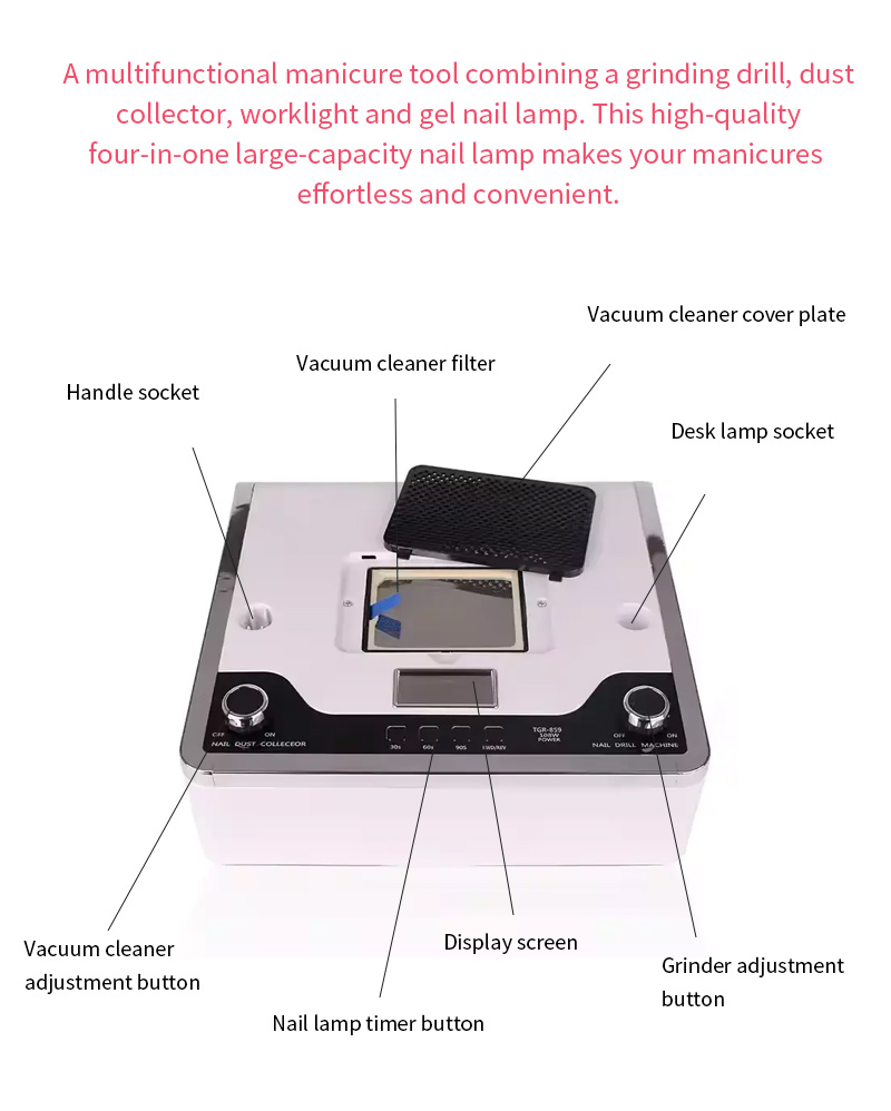4'ü 1 arada Çok Fonksiyonlu Tırnak Lambası, eller yaklaştığında otomatik olarak yanan ve eller uzaklaştığında kapanan kızılötesi akıllı algılama teknolojisine sahiptir; böylece düğmelere tekrar tekrar basma zahmetini ortadan kaldırır ve zamandan ve emekten tasarruf sağlar. Yüksek güçlü pişirme tutkalı uzun süre beklemeyi gerektirmez, hem zamandan hem de emekten tasarruf sağlar.