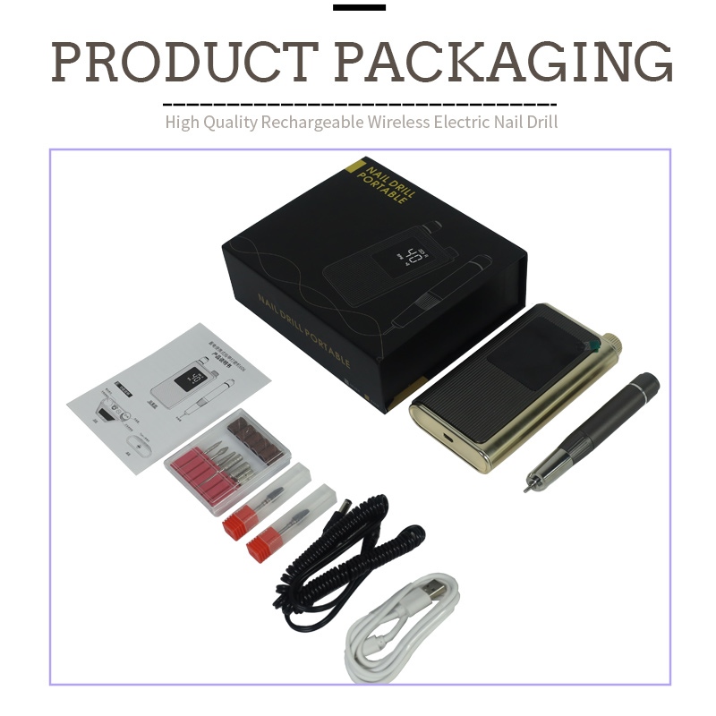 40.000 devir/dakika yüksek hızlı profesyonel tırnak matkap paketinin içeriğinde zımpara kalemi ürünü, USB şarj kablosu, ürün kullanma kılavuzu ve hafif ve taşınabilir bir kutu bulunmaktadır.