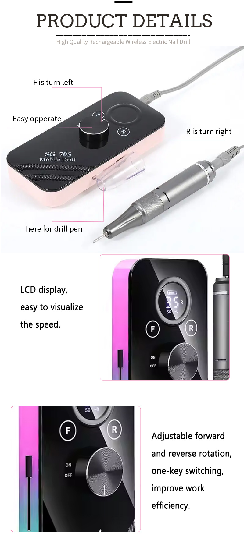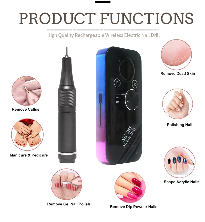 Ürün özelliği ve 705 yüksek hızlı 35000 rpm oje çıkarıcı elektrikli tırnak dosyasının uygulaması