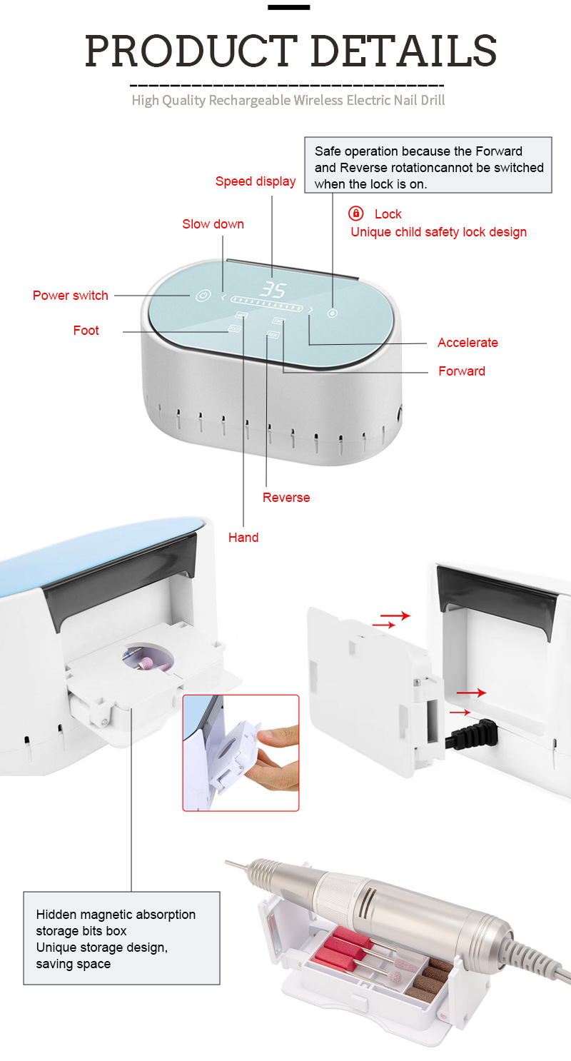 Şarj Edilebilir Tırnak Matkap Seti Ayak Parmaklarında Tırnak Matkap 35w 35000rpm