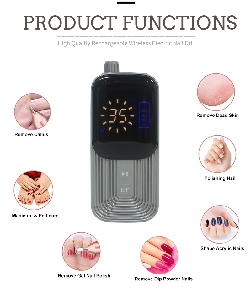 Jel Cilasını Çıkarmak İçin Elektrikli Tırnak Matkap Seti 65w 35000rpm