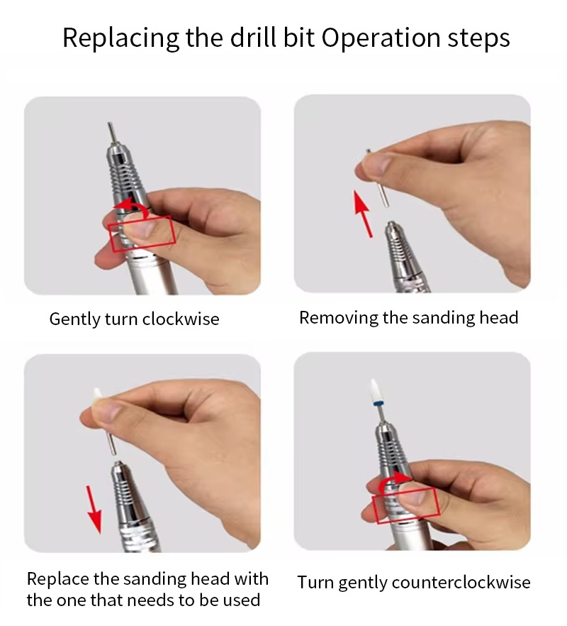 Bu el tipi tırnak matkabı ve parlatıcı değiştirme matkabı çalışma yöntemi, yani tak ve çıkar, kolay ve rahat, değiştirme tamamlandıktan sonra kullanılabilir.