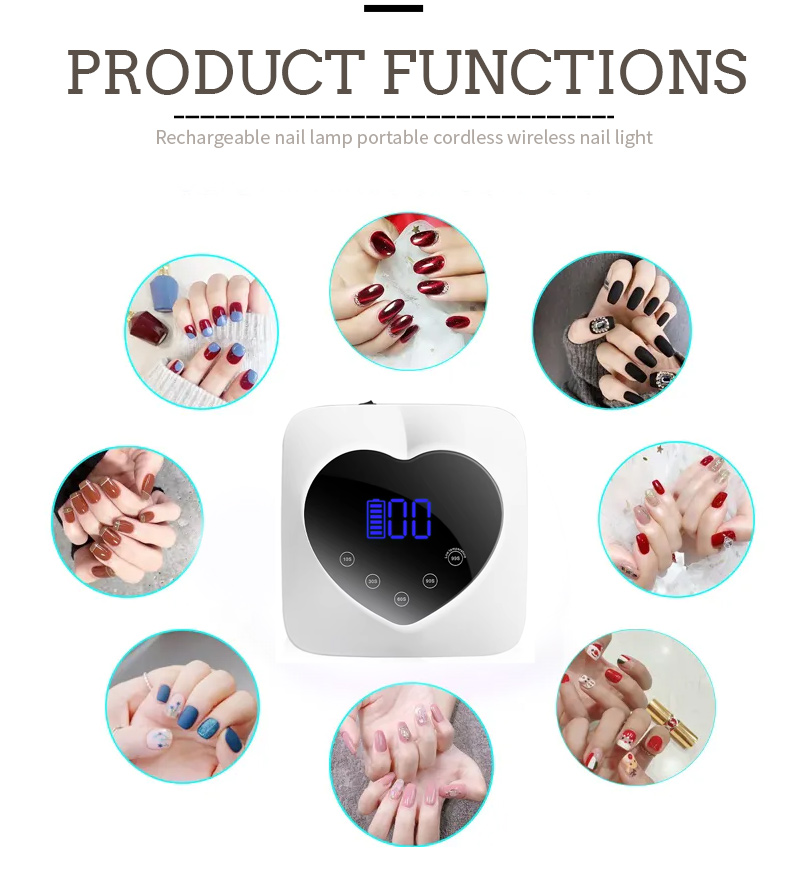 Ürün, büzülmeden tutkalın eşit şekilde kurumasını sağlar. Çift ışık kaynakları, ellerin renk solmasını ve göz yorgunluğunu önlemek için hafif bir ısıtma sağlar, hem eller hem de ayaklar için uygundur ve olağanüstü hızlı kuruma sonuçları sağlar.