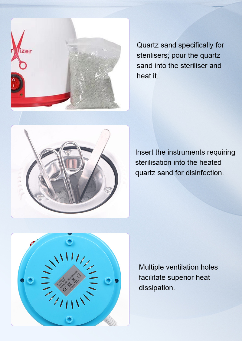Bu sterilizatör öncelikle dezenfeksiyon için yüksek sıcaklıklardan yararlanarak bir ısıtma halkası aracılığıyla ısı üretir.