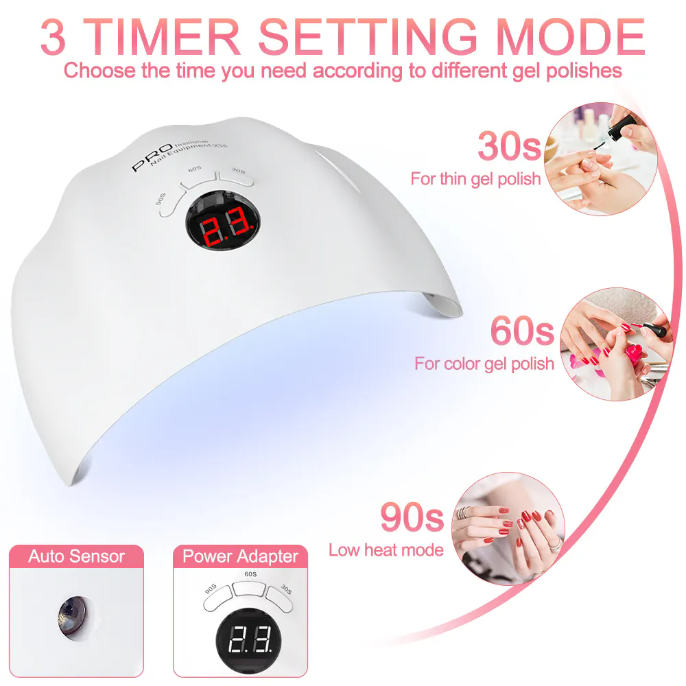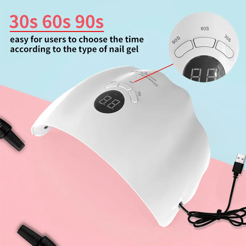 2)Şarj edilebilir tırnak kurutma lambası tırnak lambası LED vs UV 96W büyüleyici Ürün, kürleme süresi zamanlayıcısını ve güç durumu ekranını görüntülemek için büyük LCD ekrana sahiptir.