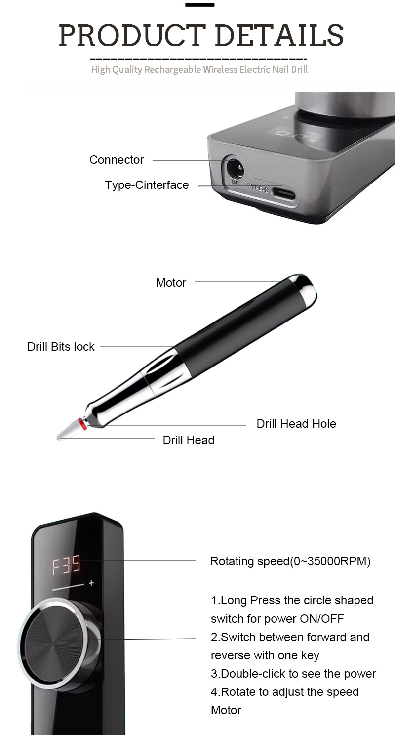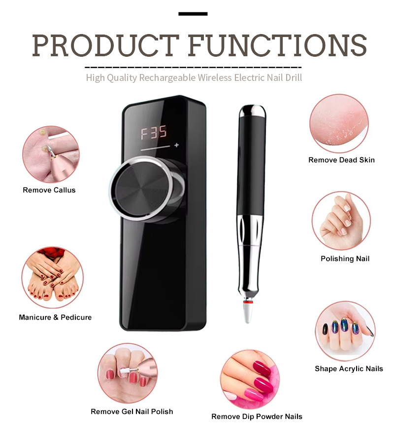 Jel Cilasını Çıkarmak İçin Elektrikli Tırnak Matkap Seti 65w 35000rpm