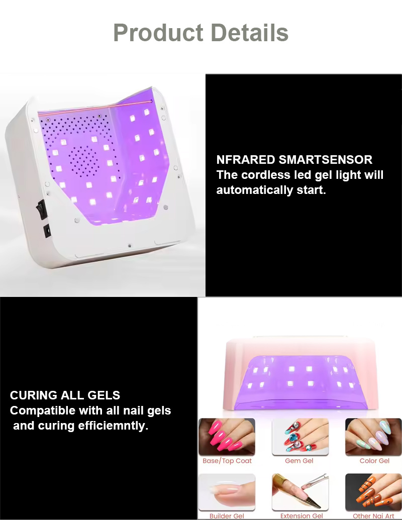 Başlıca ürünlerimiz LED tırnak lambalarını içerir: 186W/168W/86W/84W/80W/75W/72W/65W/60W/54W/50W/48W/36W/24W/16W/12W/6W/3W, vb. Şarj edilebilir kablosuz modeller: 156W/120W/96W/90W/86W/84W/80W/72W/66W/64W/60W/54W/48W vb. Tırnak sanat matkapları: 80W/65W/60W/45W/35W/25W/15W vb. Kablosuz şarj modelleri: 45W, 35W, 30W, 25W, 20W, 15W, vb. 25000RPM/30000RPM/35000RPM/40000RPM/45000RPM/Fırçasız/Ultra yüksek hızlı fırçasız. Tam toz toplayıcı. 80W/68W/60W/48W/45W/40W/36W/30W/25W/20W/15W/6W vb., Kablosuz şarj modelleri: 80W, 60W, 40W, 30W.