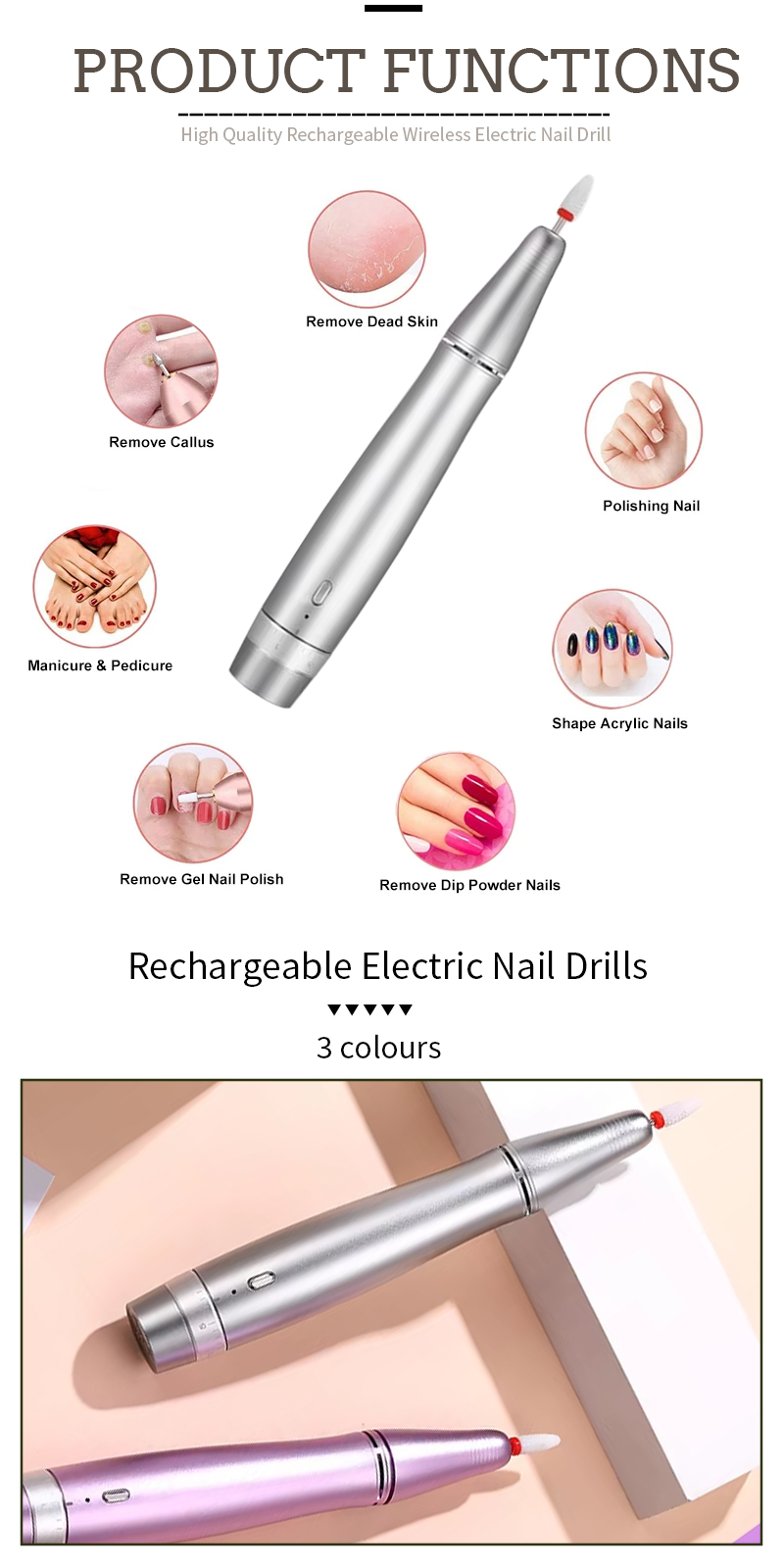 Jel Cilasını Çıkarmak İçin Elektrikli Tırnak Matkap Seti 65w 35000rpm