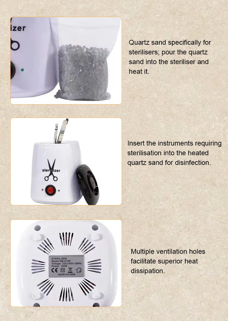 Bu sterilizatör öncelikle dezenfeksiyon için yüksek sıcaklıklardan yararlanarak bir ısıtma halkası aracılığıyla ısı üretir.