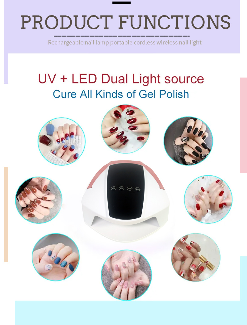 2, şarj edilebilir tırnak pişirme lambası profesyonel sürüm 90W kaymaz bir taban ile donatılmıştır.