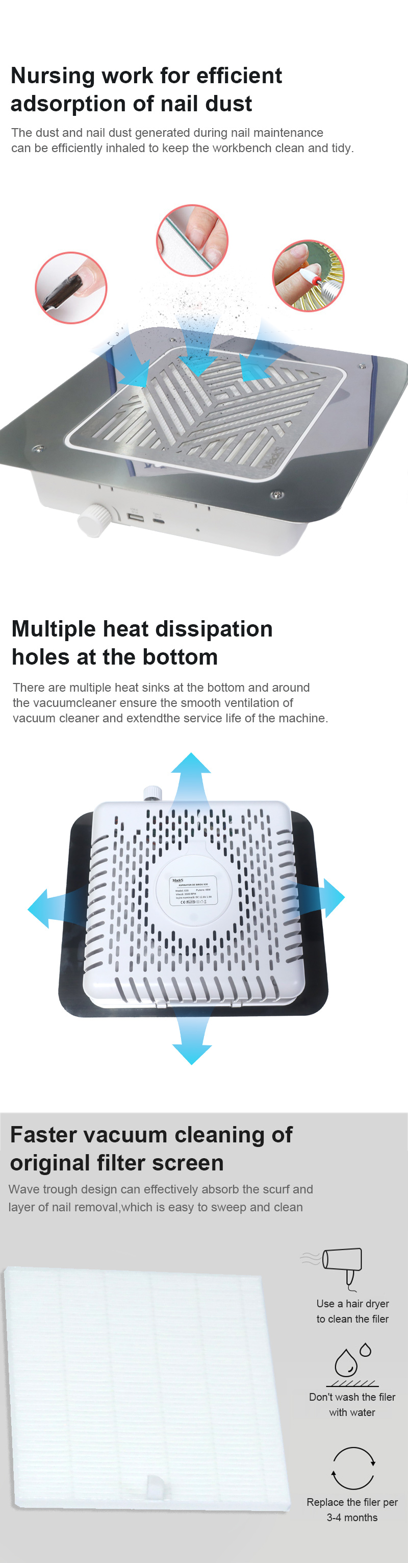 Ürünler tırnak kalıntılarını güçlü bir şekilde emer, toz sızıntısı yapmaz, tezgahın üstünü temiz ve düzenli tutar, hızlı süpürme toz sızıntısı yapmaz, yüksek güçte daha verimlidir.